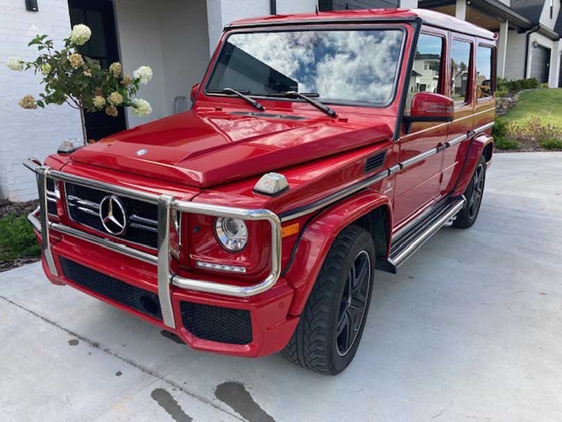 Own the original. The G63 was developed for the Shah of Iran as a military vehicle. Since then it has been adopted by Mercedes and continually upgraded to be not only unbelievably tough, but also luxurious and very, very fast. This is a two-owner car with 88K miles, mostly freeway. It has always been garaged or covered. It has all the standard features for the 2015 model year, including the 5.5 liter V8 with two turbochargers, 536 horsepower and 560 foot pounds of torque. For low traction it has three locking differentials, as well as full time 4Matic four wheel drive. Options on this car include the rare and lovely Mars Red paint, the designo interior leather package with black piano lacquer trim, heated steering wheel, and 20″ AMG wheels. New windshield and batteries. Towing package. 2023 models are $180,150.