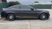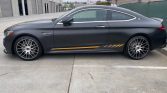 DV8 C63 S Final Edition: AMG Crest on C-Pillar, 19″/20″ AMG Forged Cross-Spoke Wheels w Black Inserts, Black Brake Calipers, Yellow/Grey Exterior Sport Decals on Front Hood and Doors, AMG Matte Carbon Fiber Center console, Dark Aluminum door trim, interior Edition badge, rellow